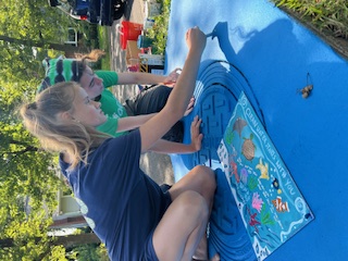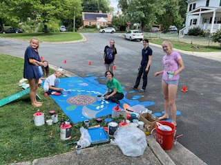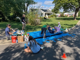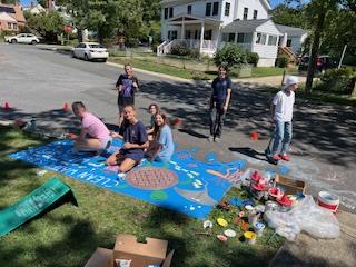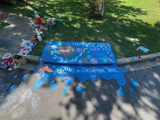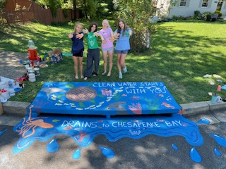 Under the guidance of the Montgomery County Department of Environmental Protection, our mission was to spread awareness about something we often overlook—where our stormwater goes. Every drop of rain that hits the streets doesn’t just disappear. It flows into storm drains and straight into our local rivers, streams, and ultimately, the Chesapeake Bay. The storm drain we painted now serves as a beautiful reminder to everyone in the neighborhood that what goes down the drain, ends up in the Bay!